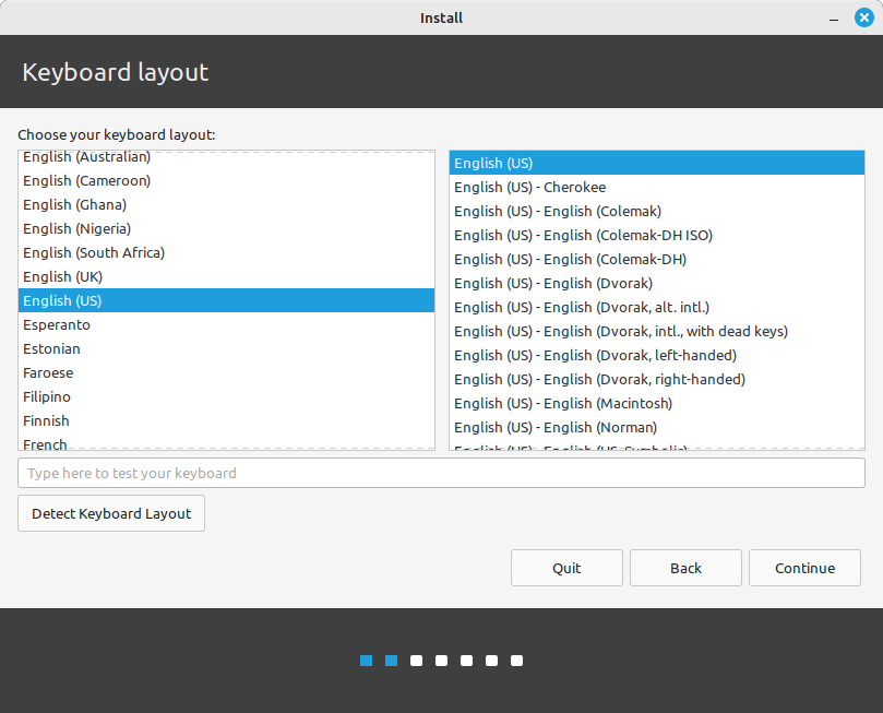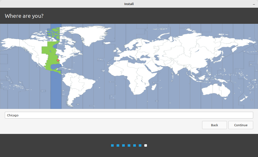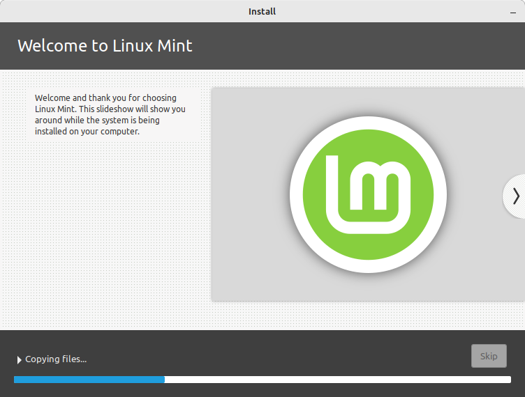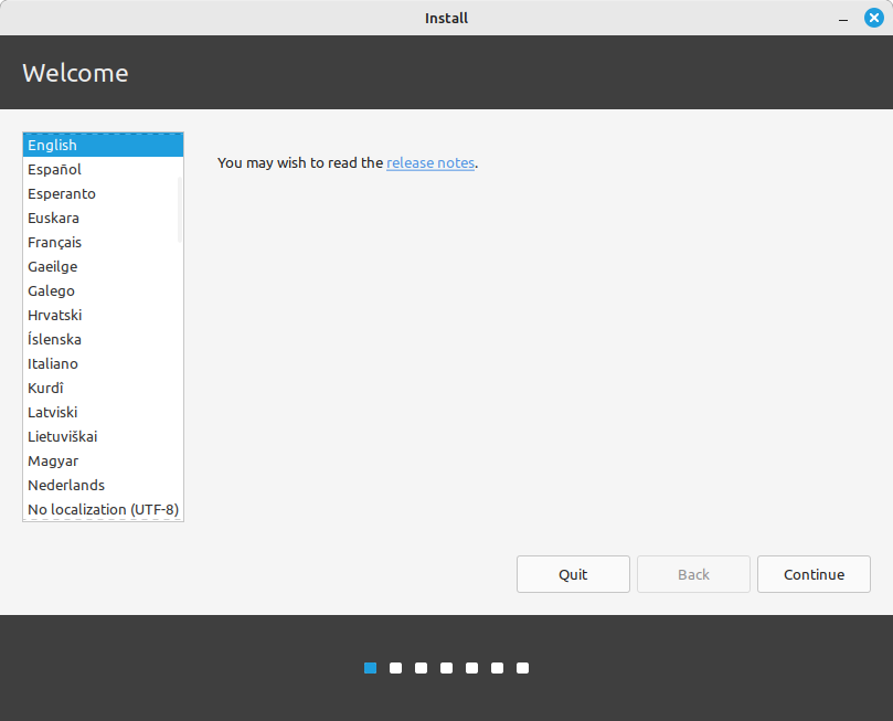 Start the installation by double-clicking on the "CD" icon in the upper right that is labeled "Install Linux Mint." You'll be prompted with the first of many screens that need your input.