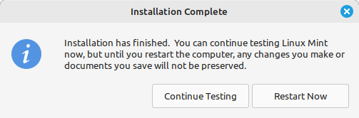 Clicking "Restart Now" will start the reboot process, which will then ask you to remove your installation media (the thumb drive) and hit "Enter" to finish rebooting.